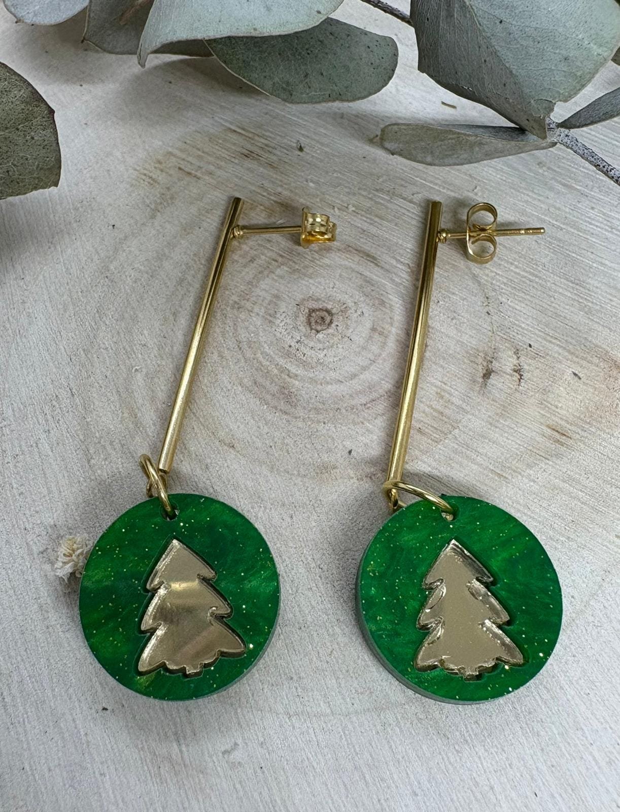 Celebra la magia de las fiestas con unos pendientes únicos, elegantes y llenos de brillo. Hechos artesanalmente con metacrilato de importación, mezclando efecto espejo y marmoleado, son ligeros, cómodos y perfectos para darle un toque festivo a cualquier look.