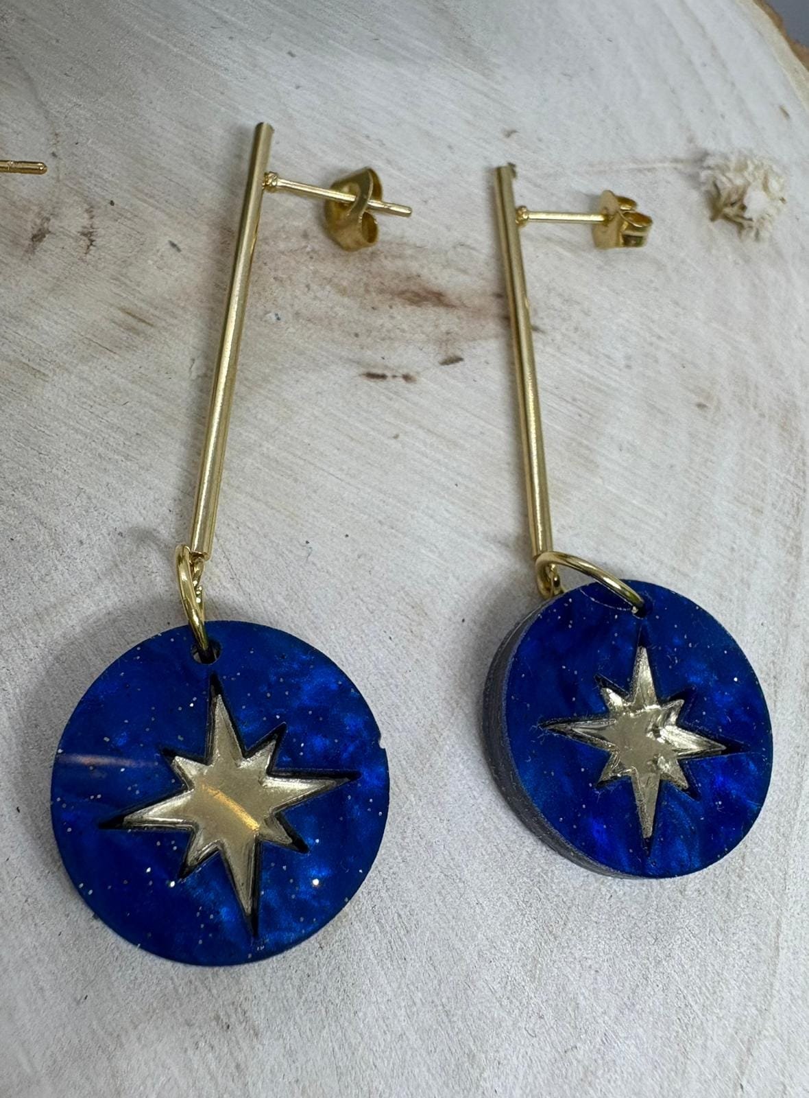 Cada par está elaborado artesanalmente con metacrilato de importación, combinando láminas de efecto espejo y marmoleado que reflejan la luz y crean un acabado elegante y festivo. Gracias a nuestro corte láser de alta precisión, los bordes son suaves, limpios y con un pulido perfecto, manteniendo la calidad y el mimo que caracterizan a todas nuestras creaciones.